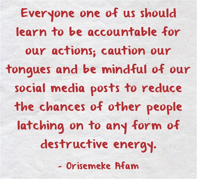 Positive impact is not the only tangible that multiplies, Vices can equally spread quickly leading to disaster if not curtailed – just like the grayscale plague, and not everyone will be as lucky as Jorah Mormont, who recovered. Everyone one of us should learn to be accountable for our actions; caution our tongues and be mindful of our social media posts to reduce the chances of other people latching on to any form of destructive energy.