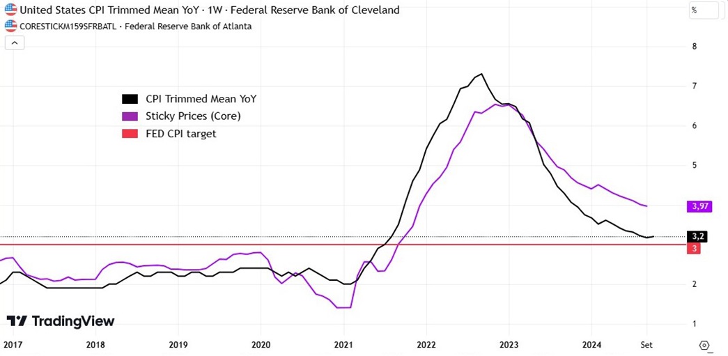 Using specialized metrics developed by Federal Reserve economists — such as the Cleveland Fed’s trimmed mean (which filters out extreme outliers), or Atlanta Fed’s “Sticky Prices” (focusing on slower-moving costs), it becomes evident that inflation isn’t under control yet.