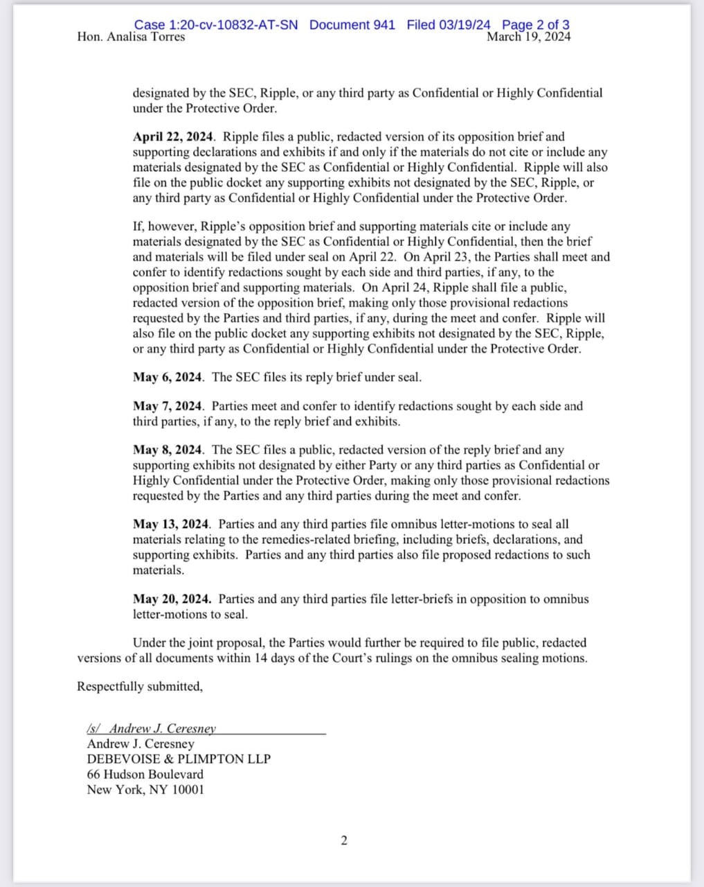 This joint sealing proposal is a critical step in the litigation process, ensuring that sensitive information remains confidential while allowing public access to documents that are crucial for understanding the case’s implications for the XRP community and the broader cryptocurrency market.