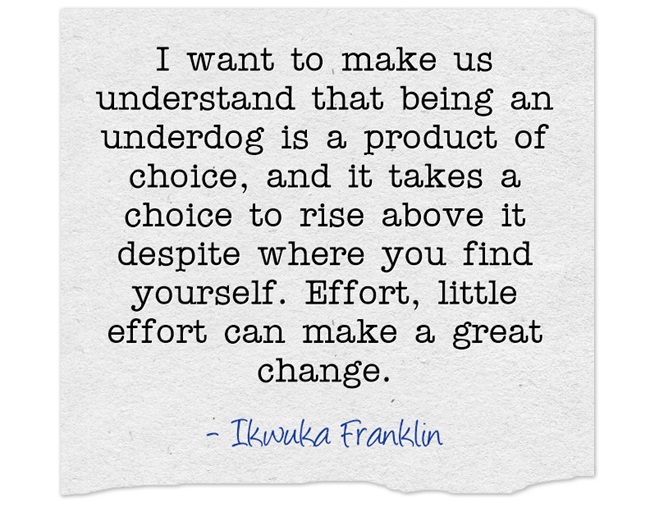 In this piece, I want to make us understand that being an underdog is a product of choice, and it takes a choice to rise above it despite where you find yourself. Effort, little effort can make a great change.