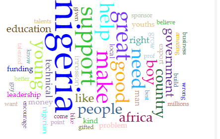 Examination of the reactions and comments by our analyst indicates that Nigerian professionals want rural talents to be found and nurtured using ABI Playbook [created by our analyst from the reactions and comments after modeling the trends in the reactions and comments]. According to our analyst, ABI Playbook encompasses identification of the talented youths and others in the rural areas across the country by individuals and communicating such youths to the world through new media, especially YouTube. The Playbook also entails an appropriate response from the government authorities to the need of the youths without compromising ability to give them the needed resources, most importantly placing them in domains where their ideas and creativity would be further enhanced. Our analyst also notes that the Playbook would be incomplete without the support of individuals and businesses.