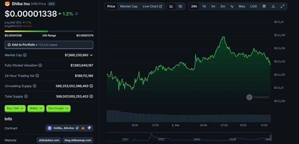 Shiba Inu Price Chart (24-Hour), Mar. 6, 2025 | Source: Coingecko