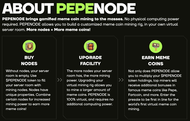 Now PEPENODE comes along with something completely different. Instead of just holding tokens and hoping for the best, users get to play a mining game. No real mining equipment needed. No electricity bills. Just virtual nodes that you can buy and upgrade.