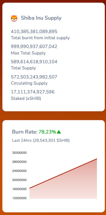At 3:25 p.m. UTC on March 7, $SHIB burn tracker Shibburn reported that in the past 24-hour period, the $SHIB burn rate was up 78%. Over 410 trillion SHIB tokens have so far been burned, i.e. permanently removed from the supply or sent to an inaccessible Ethereum address.