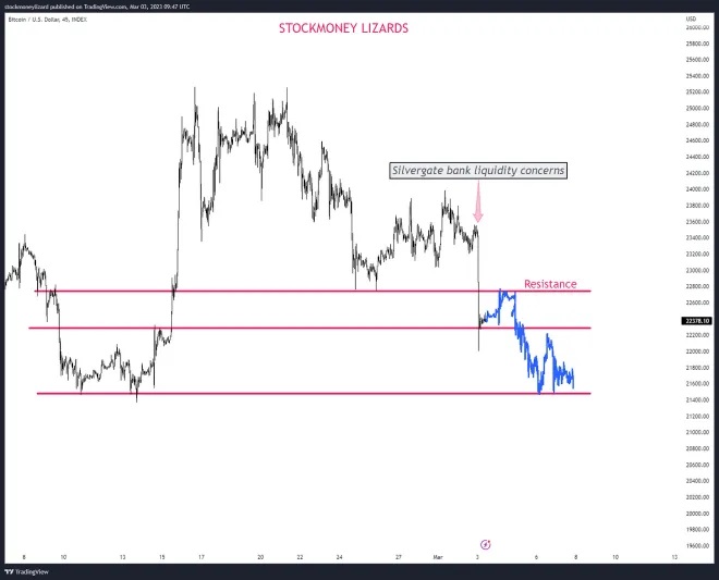 Silvergate crashed yesterday and markets are down. Within a timespan of 12 hours we’re talking about Mt. Gox, the worst to happen with Ethereum unlocks, Tether to collapse, Big Crisis to happen and more. Typical scenario in crypto. Silvergate bank liquidity concerns are another short-term sentiment killer.