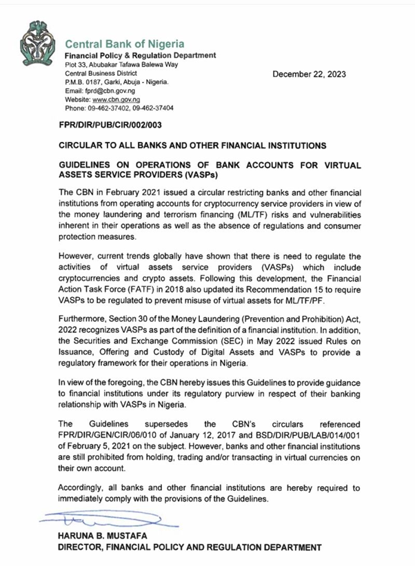 The circular quite clearly says ‘there is need to regulate the activities of Virtual Asset Service Providers (VASPs), which include Cryptocurrencies and Crypto Assets.’ They also mention ‘custody of Crypto Assets and VASPs’.