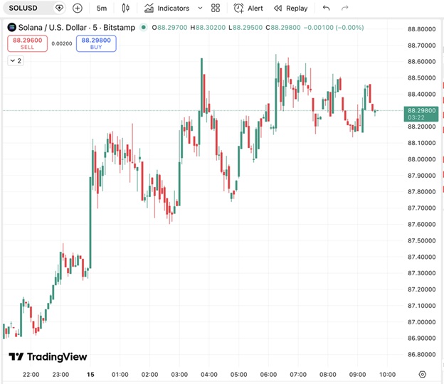Solana is currently trading at $88.29. The price has gained 1.1% over the past day. The market capitalization of Solana is $50.46 billion, while the trading volume is $2.09 billion.