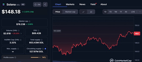 Solana has been in a slump lately, with only about 2% growth in the past day, settling at $148. That’s not too scary on its own—but it came alongside a sharp 25% dip in trading volume, which raised some eyebrows. Price action has also been forming a familiar pattern: lower highs, lower lows. That’s classic descending channel behavior, and while it looks bearish on the surface, it’s also a setup that can flip bullish fast—if Solana breaks the right levels.