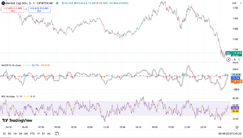 Besides, the RSI is at 51.96, indicating that SOL is in a neutral place. Whether it will go upwards and cross the resistance level or fall below the $112 Billion market cap, only time will tell.