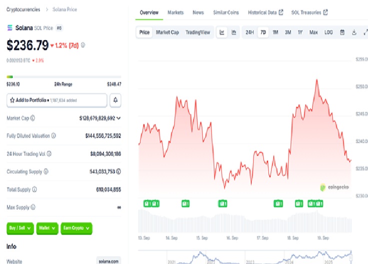 SEC clearance of Grayscale’s multi-crypto fund, which contains Solana, is critical for Solana. This is acceptable because it adheres to crypto ETF guidelines and enables large investors to purchase Solana, potentially boosting its price. Solana, in a huge investment fund, may attract more significant players, strengthening it. Additionally, Solmate has launched a $300 million Solana fund in the UAE, backed by Ark Invest. This fund plans to establish a staking setup and expand Solana’s presence in the Middle East, demonstrating that major investors are increasingly confident in Solana. This strategic move is expected to help spread Solana globally and boost its value. Finally, Forward Industries filed a $4 billion stock program to build its Solana fund. This suggests that significant investors are betting on Solana’s future, which is expected to raise the price. With all these factors in play, Solana is well-positioned to reach $300 soon, particularly with rising interest from major investors and network growth driving it forward.