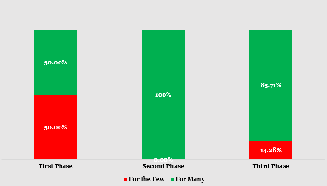 From the 7 demands allotted to the third phase, which is dubbed as return political power and national wealth to the working people, Sowore and his members want complete and uncompensated repossession by the working people of all national resources stolen by the ruling class and abolition of the death penalty except for the embezzling or privatisation of the public wealth. The Group presented a total of 19 demands. Out of this, our analysis reveals that 26.31% would benefit the few Nigerians, while 73.68% would benefit many Nigerians [see Exhibit 1].