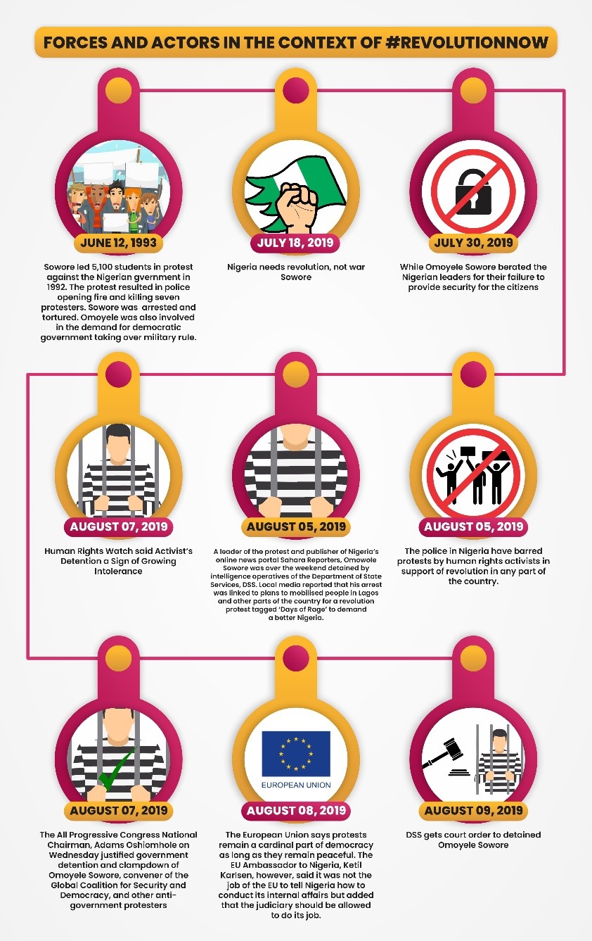 Omoyele Sowore, appears to be another political and social activist, who believes in strong social movement and revolution as means of making socioeconomic and political structures effective in Nigeria [see his trajectory of calling for good governance and consequences in Forces and Actors in the Context of #Revolutionnow section].