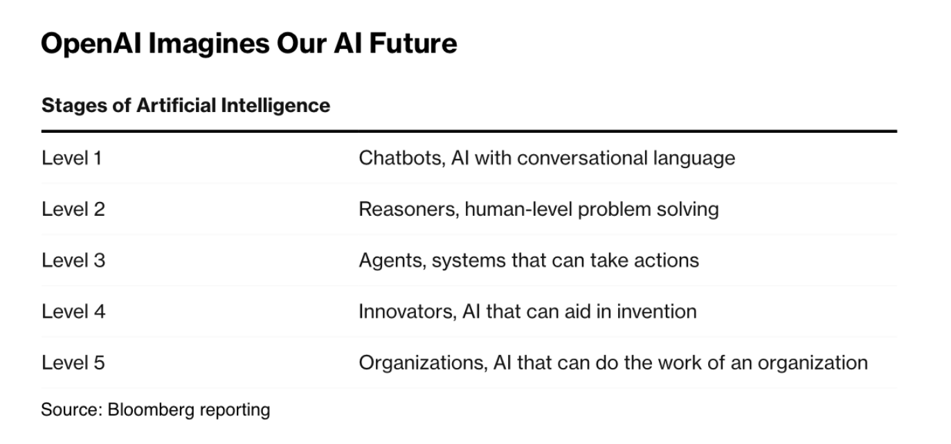 OpenAI has introduced a five-tier system to track its progress towards achieving Artificial General Intelligence (AGI). The levels range from Level 1, representing current conversational AI, to Level 5, envisioning AI capable of managing and performing the work of an entire organization. OpenAI believes it is approaching Level 2, which involves problem-solving akin to a PhD without tools. The framework aims to provide a structured approach to understanding and developing AI systems that could eventually surpass human intelligence.