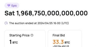 The first Satoshi of Bitcoin’s fourth halving block auctioned off for...