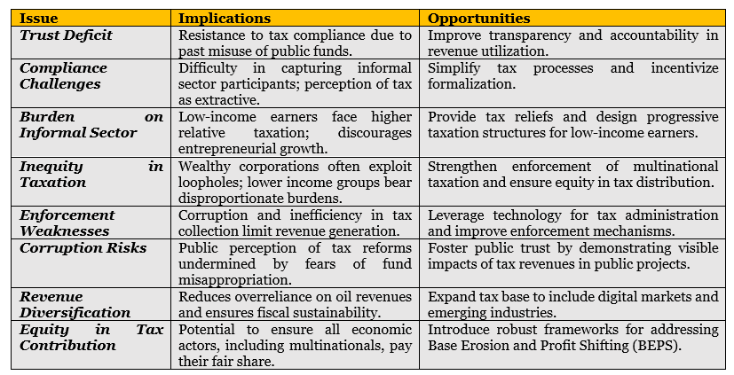 To ensure its success, the government must go beyond technical fixes and address the deeper systemic issues that undermine public trust. This includes tackling corruption, simplifying tax processes, and fostering a more inclusive dialogue on fiscal priorities. By aligning taxation with broader social and economic goals, Nigeria can create a tax system that not only generates revenue but also promotes equity, inclusion, and trust.