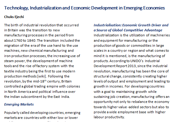 In this paper, I write on technology, industrialization and economic development in emerging economies.