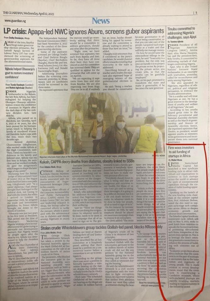 Tekedia Capital is in the news in many newspapers this season as we begin a new investment cycle here.