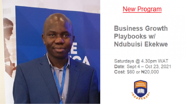 Tekedia Institute is excited to announce the launch of a new program: Business Growth Playbooks w/ Ndubuisi Ekekwe, a live program which will take place on Zoom. It will focus exclusively on growth strategies, mechanisms, models, frameworks, etc which businesses can deploy to win new markets and territories. In other words, the program objective is to master how companies can grow, biased for the African markets.