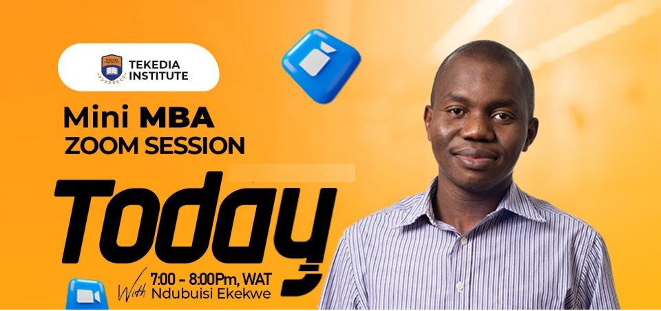 Greetings! This is a reminder that Tekedia Live, the live portion of Tekedia Mini-MBA, begins today at 7pm WAT. It runs for 60-90 minutes. The Faculty will make a presentation and then take Q/As.
