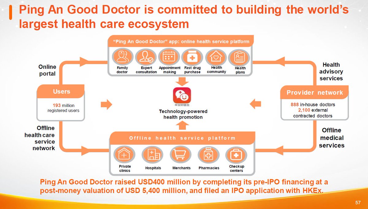 Ping An Healthcare & Technology Company is the leading one stop healthcare ecosystem in China. It combines mobile health plus Artificial Intelligence to provide every family with an e-health profile and everyone with a health care management plan. Ping An Good Doctor which is an online portal has established a comprehensive healthcare ecosystem which covers family doctor services, consumer healthcare services, a health mall as well as health management and wellness interaction.