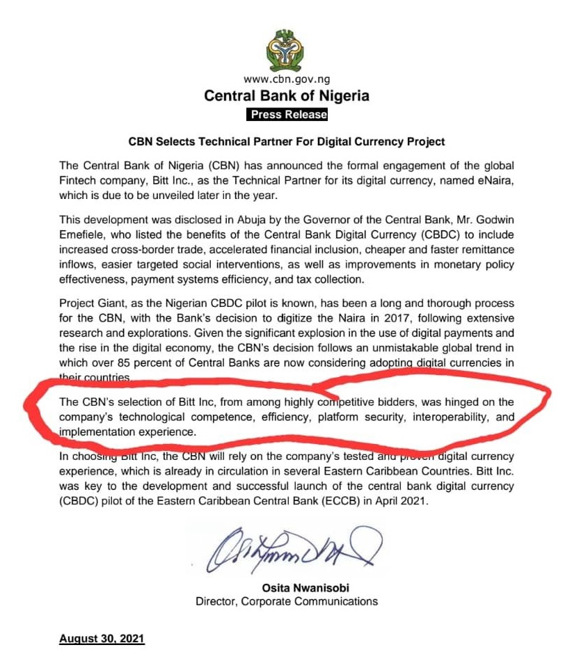 The CBN listed technological competence, efficiency, security, interoperability and experience, as factors that informed its selection of Bitt Inc as technical partner. Depending on where you stand on the equator, it made sense but at the same time self-indicting. I think the defense is very weak in many respects.