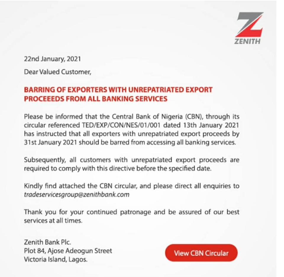 So, most exporters have gone to open overseas accounts or alternatives, and CBN has lost control! Now, you see this letter (below)