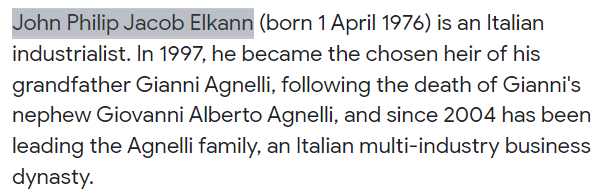 I understand your point but I want you to agree that these families do have control and command. John Elkann was about 21 when he was chosen by the Agnelli and at 28, he assumed the top job. From there, he hired the CEOs of Fiat, and financial services firm within the holdco. (See below and you can trace it back decades).