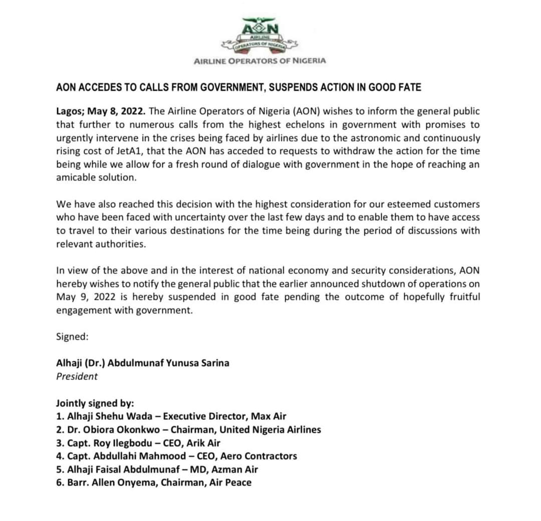 I am updating that our planned orchestration of camels to move humans across Nigeria has been suspended. Yes, the airlines are not going to “strike” with shutdowns because the government has come along. Of course, no sensible Nigerian would have believed those airlines when they threatened to withdraw their services.
