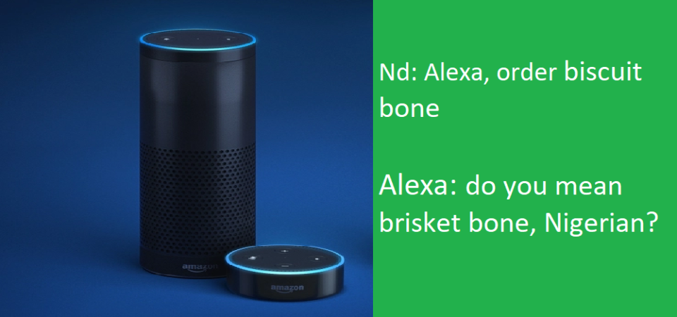 Amazon’s Alexa, an intelligent personal assistant, “discriminates”. It struggles with my nice Nigerian accent. It gets so bad that most times I just give up. Sure, it is not Alexa’s problem. It is also not my problem. But someone has to make it easy for me to participate in the voice-activated ecosystem.