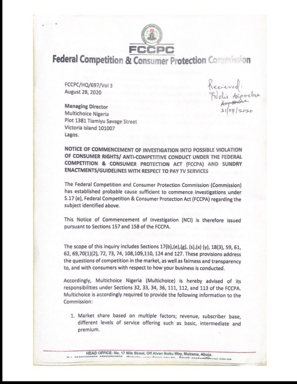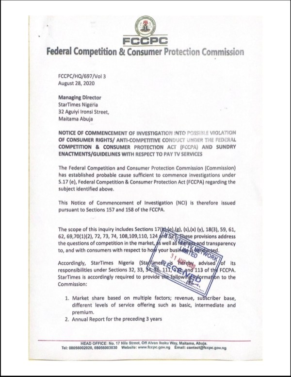 The latest is Startimes has raised the prices of its subscription plans by an average 22 percent effective August 1, 2020. Multichoice Nigeria has also announced it would implement an upward adjustment on its DStv and GOtv packages on September 1. Federal Competition and Consumer Protection Commission (FCCPC) Nigeria is investigating these two PayTV players on potential consumer rights violations. Read the notice below…