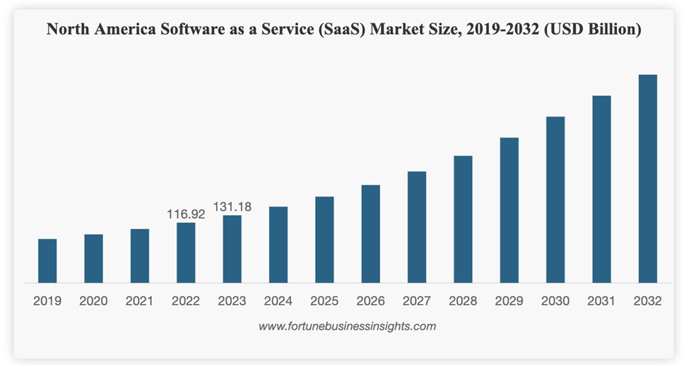 This trend has extended into the business software realm, where SaaS solutions dominate. The global SaaS market, valued at $273.55 billion in 2023, is expected to grow to $1,228.87 billion by 2032.