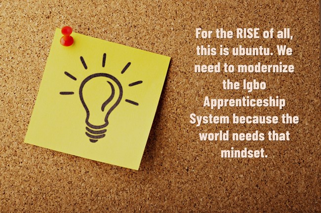 For the Igbo Apprenticeship System, the main focus is to prevent poverty by mass-scaling opportunities for everyone, and not for building conglomerates! It makes no sense in Adam Smith Economics that a man will build a business, accumulate a market share, and one day decides to relinquish some – and even go further by funding his competitors. But he is accomplished by doing so: those competitors are his brethren (umunneoma) and they will RISE with him. In a world of inequality, despite the obvious inefficiency in this system – lack of scale reduces the capacity to solve big problems – it is all about ubuntu.