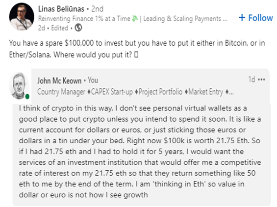Crypto is just a transaction vehicle, and the problems arise when we think of them as an investment. In a lot of ways they are limited in their application, but so too are many currencies, including the Naira, which cannot be traded on open international money markets.