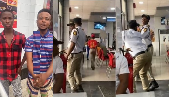 A video of two security guards manning the security posts of a Chicken Republic restaurant has been trending. In the video, the security boys were seen abandoning their duty posts and happily engaged in a dance battle amongst themselves inside the chicken republic restaurant and video recording it for tik tok and instagram views.