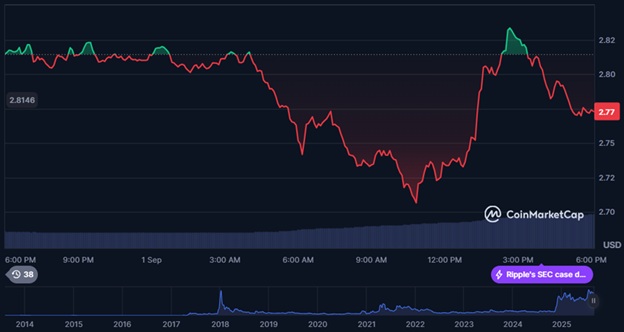 XRP remains a leading liquidity token for cross-border value transfer. The current market price is 2.77 dollars at the time of writing. Cryptocurrency markets experienced declines in early September, with major tokens including XRP facing price corrections.