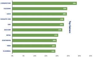 This positive performance of the equities market is driven majorly by falling yields on treasury bills, opportunities for high dividend yields and some specific corporate announcements. The stocks that have benefited most from this performance are: