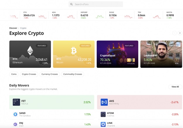 We also like eToro as it allows you to invest in Metaverse coins and other digital currencies in a passive manner. In this respect, you have two options. First, the copy trading feature allows you to mirror the investments of a successful crypto day trader. Second, you can inject some capital into a crypto-specific portfolio, which is managed by the eToro team. To get started with eToro right now, you only need to meet a minimum deposit of $10.