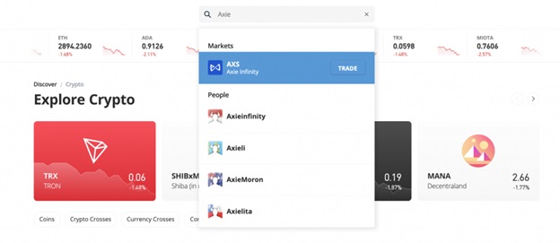 If you already know which Metaverse crypto coin you want to add to your eToro portfolio, use the search bar at the top of the screen.