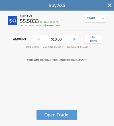 Regardless of how much the token is trading for at the time of the order, you can invest from just $10 at eToro. Confirm your Metaverse investments by clicking ‘Open Trade’.