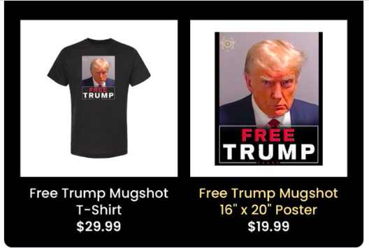 However, Trump and his campaign organization have shared the mugshot on the internet – hoping to cash in on the frenzy that it is generating. It was prominently featured on Trump’s campaign website, under a “personal message from President Donald J. Trump.” At the page’s bottom, there were multiple clickable tabs enabling users to contribute to his campaign through small-dollar donations