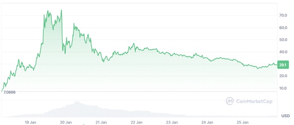 Currently, $TRUMP is trading at $29.1 on Coinmarketcap, down 61% from its peak of $74.59 on the 19th of January.