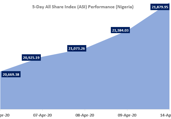 Since close of trade on 6th April 2020, the market has now gained over 5.80% in four consecutive trade days and recovered over N630 billion for Investors, the last time the market enjoyed this streak was January 2020.