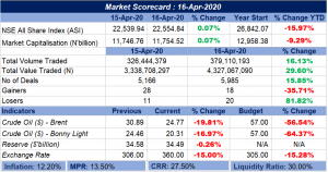 Tracking from 6th April 2020, the market has now gained over 9% in 6 consecutive trading days and recovered over N980 billion for Investors. The last time the market enjoyed this bullish run was an 8-day streak between 2nd and 13th January 2020.