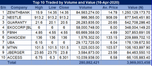 Market Turnover: Heavy profit-taking on the shares of ZENITH and bargain exchange in the shares of blue-chips like NESTLE and DANGCEM increased the volume of the market by 16.13% and value by 29.60%. See top 10 traded stocks below: