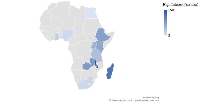 African countries dominate the search rankings, with Malawi (100), Madagascar (79), Zambia (54), Ethiopia (49), and Kenya (45) recording the highest levels of interest. These nations have long relied on USAID funding for health, education, and infrastructure, making the potential loss of support particularly alarming. The heightened interest reflects fears over the disruption of critical aid programmes and economic assistance that have helped sustain these regions for decades.