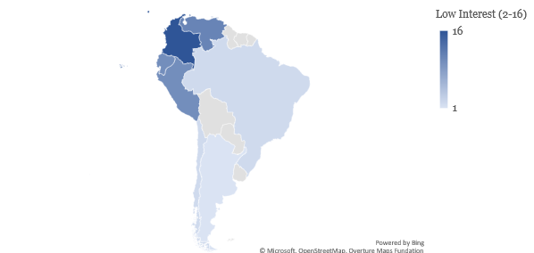Elsewhere in South America, Colombia (16), Venezuela (11), Peru (10), and Ecuador (10) have shown some degree of engagement. While USAID has played a role in their economic and humanitarian programmes, overall search interest suggests that these nations may have diversified funding sources or alternative partnerships that cushion the impact.