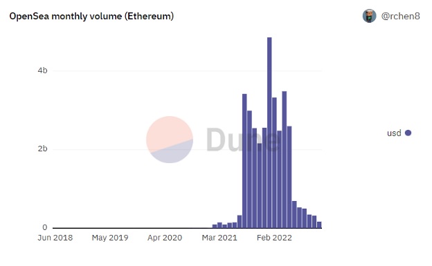Monthly trading volume (in USD) on OpenSea through November 1, 2022. Image Credit: Dune