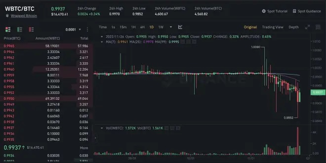 There’s a lot of fud lately on WBTC (WBTC Depegging). Wrapped Bitcoin (WBTC) is an ERC20 token backed 1:1 with Bitcoin. WBTC standardizes Bitcoin to the ERC20 format, creating smart contracts for Bitcoin.