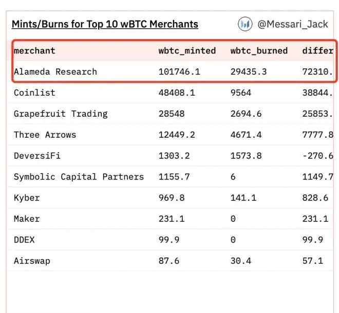Alameda minted 101,746 WBTC and only burned 29,435 WBTC. The outcry by Influencers on Crypto Twitter are mere FUD. The problems won’t start until Bitgo and Coinlist are under pressure; we’re just getting started.