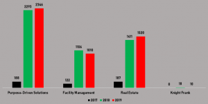 In the journey of understanding companies with purpose-driven model, analysis shows that businesses and individuals have had encounters with Knight Frank between 2017 and 2019. We found 88.7% connection of the interest with Knight Frank. The need to be purpose-driven in processes, people and solution is more pronounced when we found 99.4% linkage of the interest with Knight Frank within the facilities management sector and 99.9% for the real estate sector.